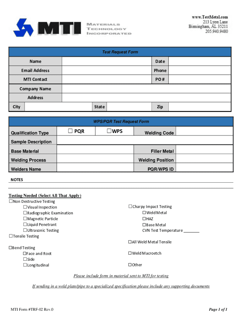 Test Request FormNameDateEmail AddressPhoneMTI Contact PO #Company Name