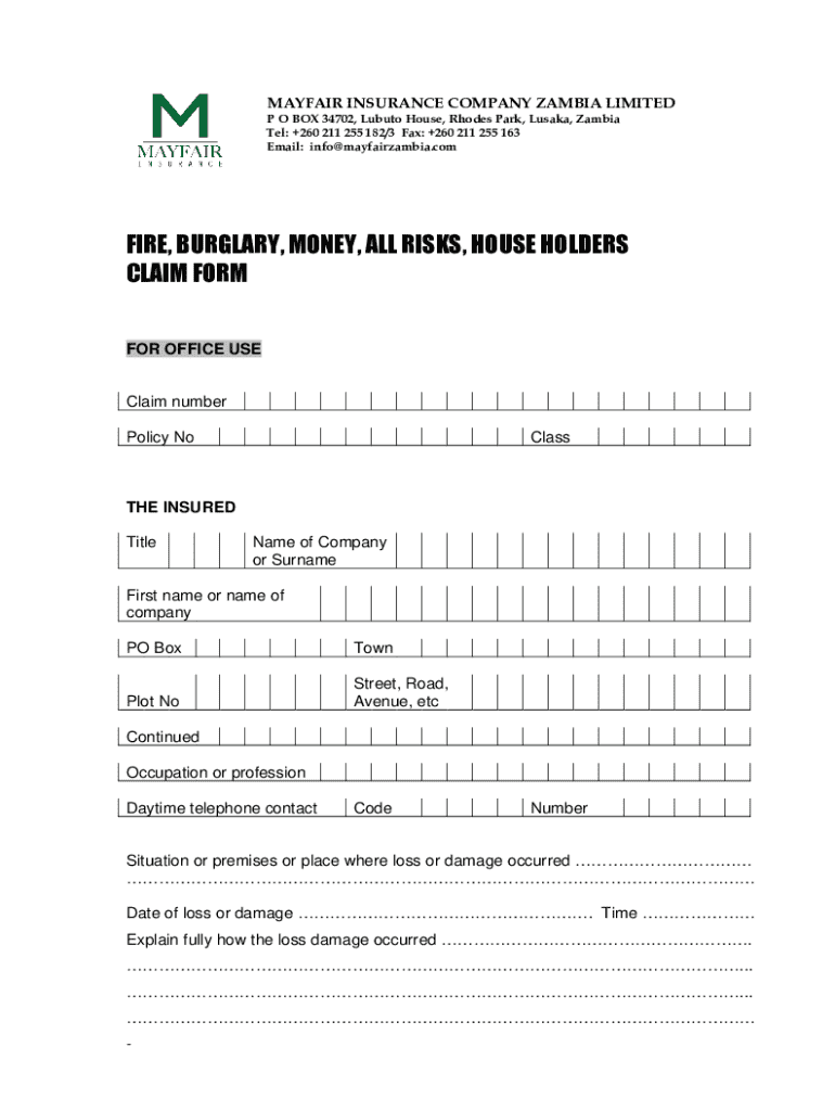 Email: info@mayfairzambia.comFIRE, BURGLARY, MONEY,