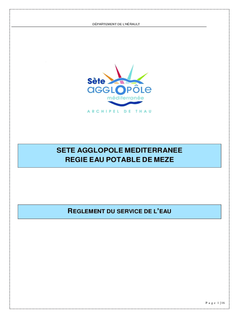 REGIME EAU POTABLE DE MEZEREGLEMENT DU SERVICE DE LEAP a g e 1 | 16SOMMAIRE