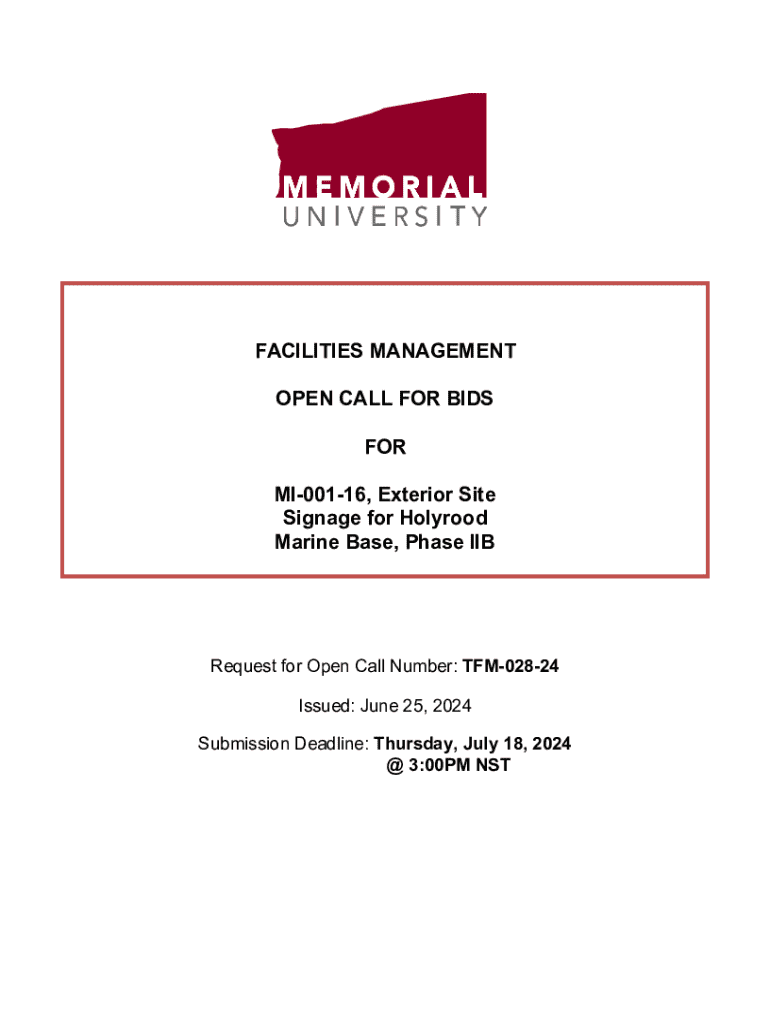 OPEN CALL FOR BIDS