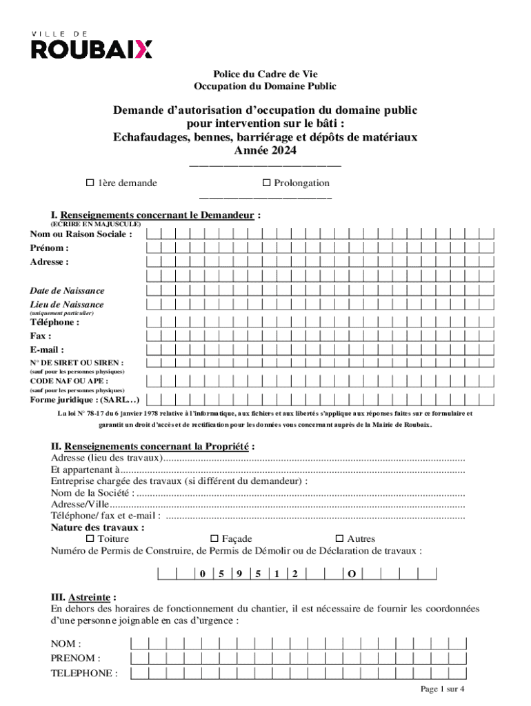 Occupation du Domain PublicDemande authorization occupation Du domain public