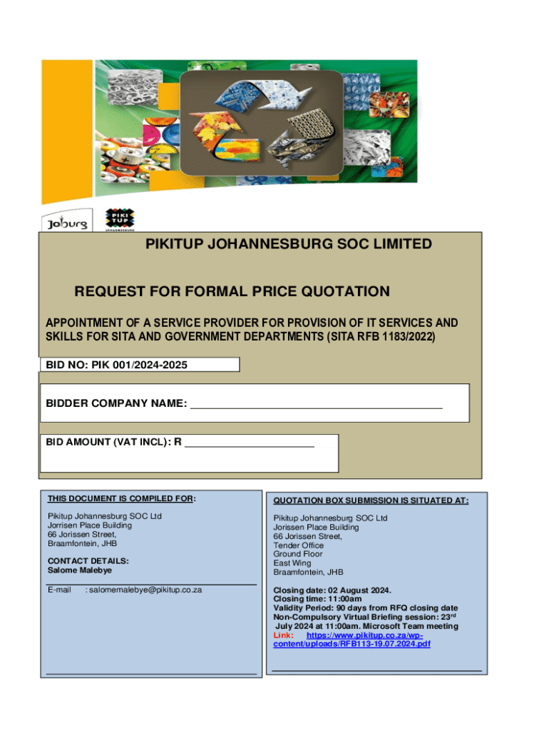 PICKUP JOHANNESBURG SOC LIMITEDREQUEST FOR FORMAL PRICE QUOTATION