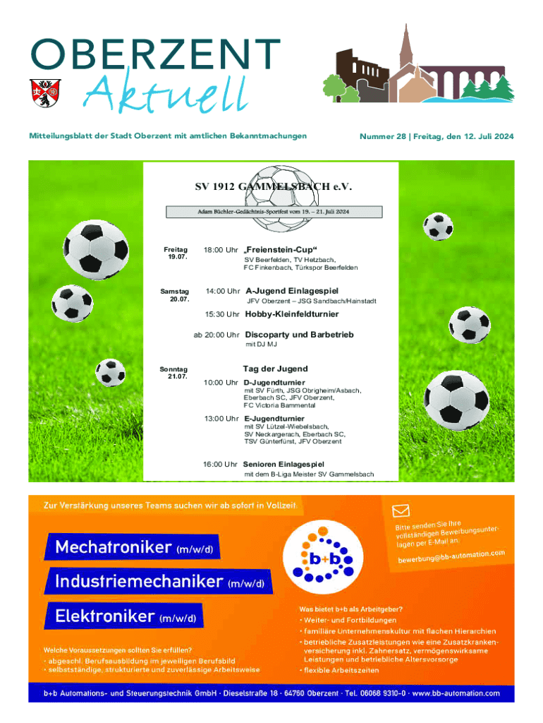 OBERZENTAktue llMitteilungsblatt her Start Obedient MIT amt lichen BekanntmachungenNummer 28 | Freytag, den 12. July 2024SV 1912 GAMMELSBACH e.V. Freitag