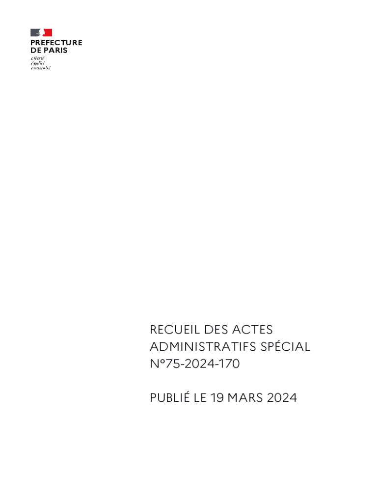 PREFECTURE DE PARISRECUEIL DES ACTES ADMINISTRATIFS SPCIAL N752024170 PUBLI LE 19 MARS 2024Sommaire Prfecture de Police / Cabinet 752024031800009 Arrt n 202400350 limitant temporairement le volume