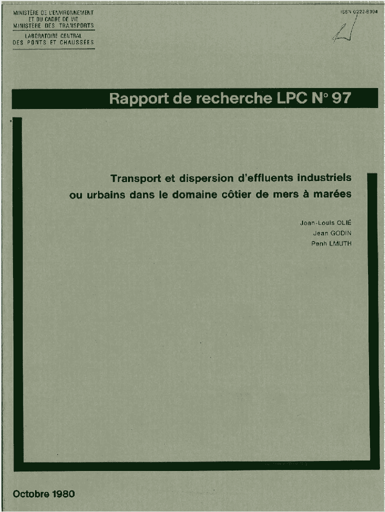 rapport de recherché LPC N 97Transport et dispersion d\'effluents