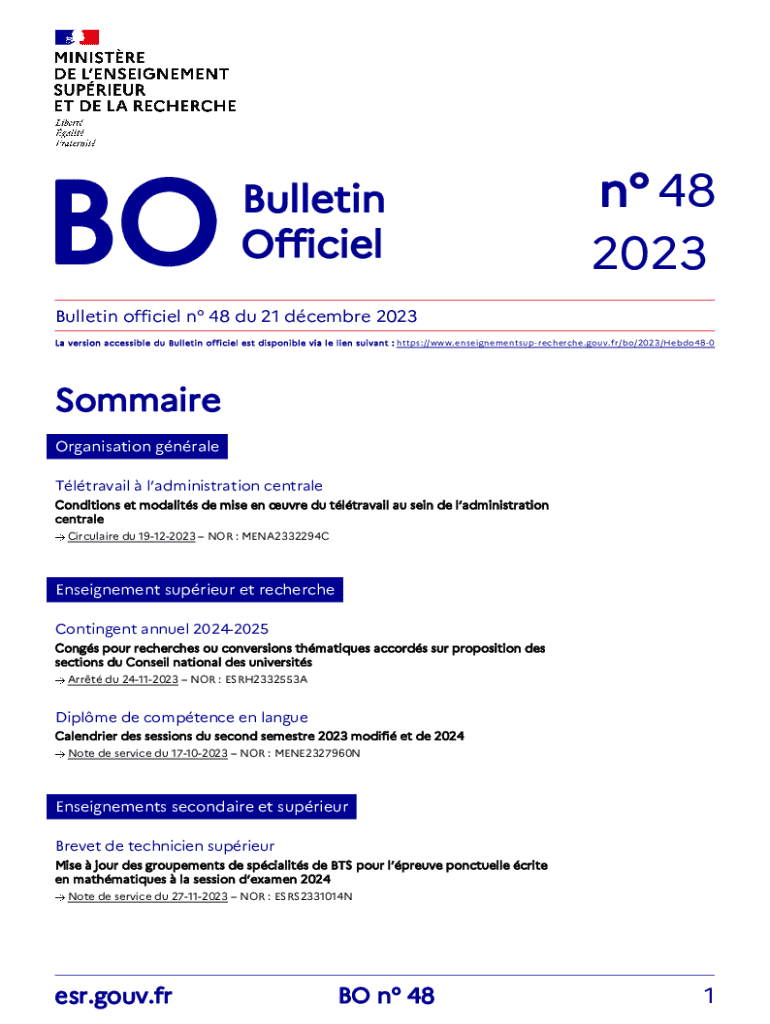 La version accessible Du Bulletin official est disposable via LE lien servant : https://www.enseignementsuprecherche.gouv.fr/bo/2023/Hebdo480Sommaire