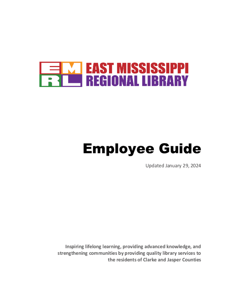 Employee Guide Updated January 29, 2024Inspiring lifelong learning, providing advanced knowledge, and strengthening communities by providing quality library services to the residents of Clarke and