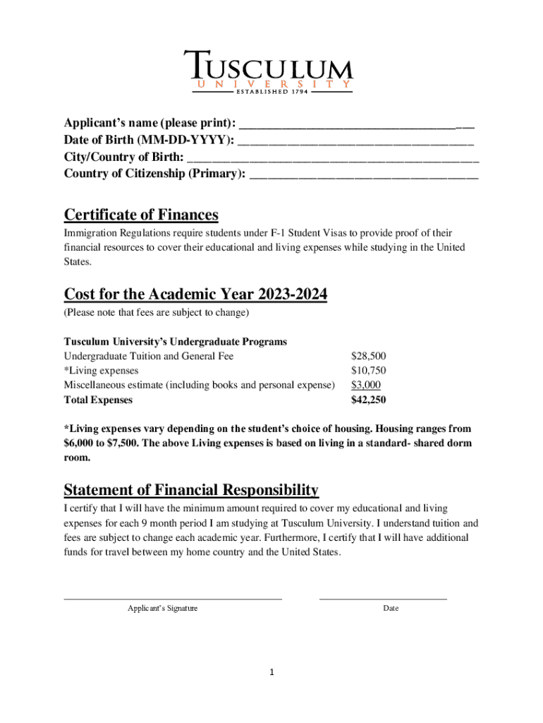 Country of Citizenship (Primary): ___Certificate of Finances