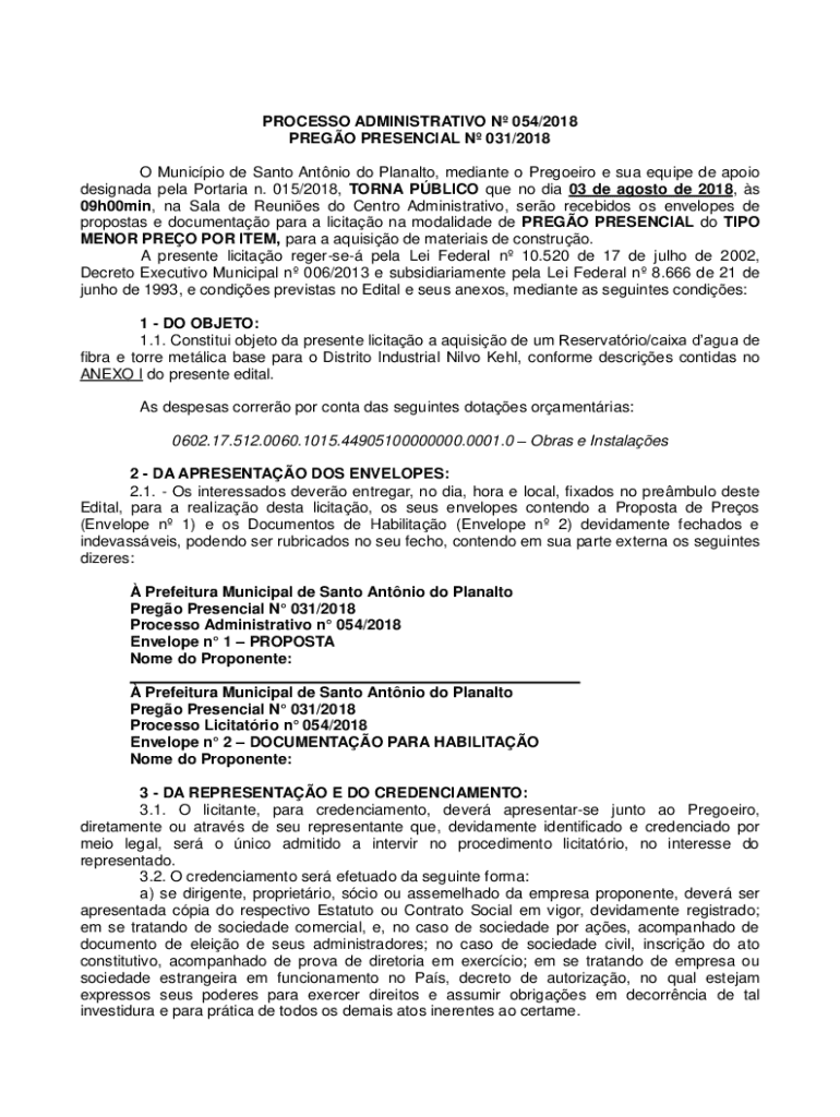 Obtenha o gratuito O Municpio de Santo Antnio do Planalto, mediante o Pregoeiro e sua equipe de a...