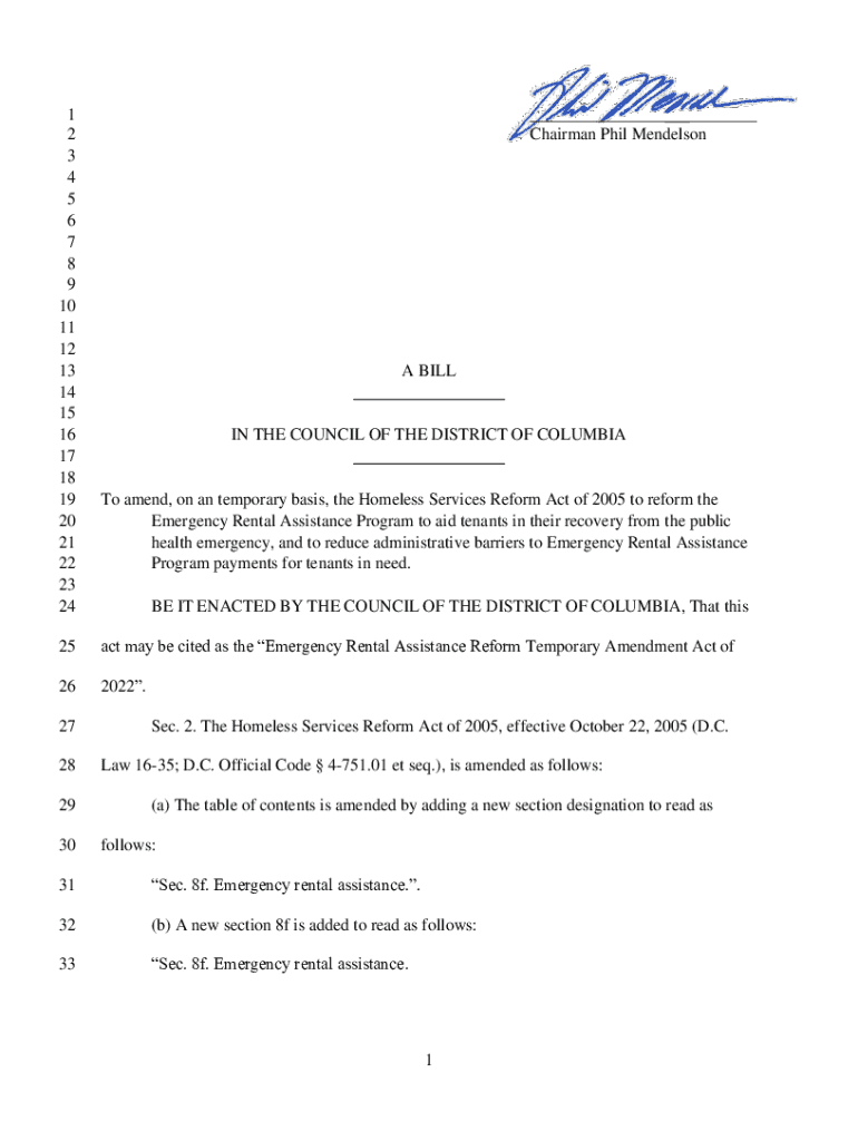 1 2 3 4 5 6 7 8 9 10 11 12 13 14 15 16 17 18 19 20 21 22 23 24___ Chairman Phil MendelsonA BILLIN THE COUNCIL OF THE DISTRICT OF COLUMBIATo amend, on an temporary basis, the Homeless Services Reform