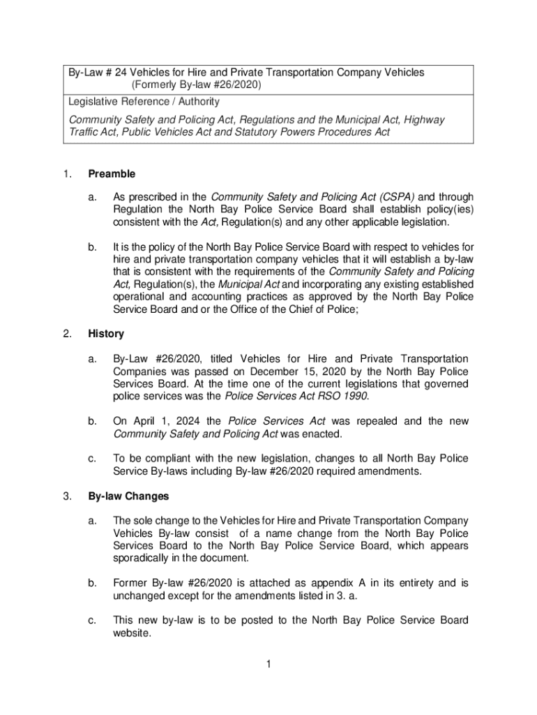 Get the free 1 By-Law # 24 Vehicles for Hire and Private Transportation ...
