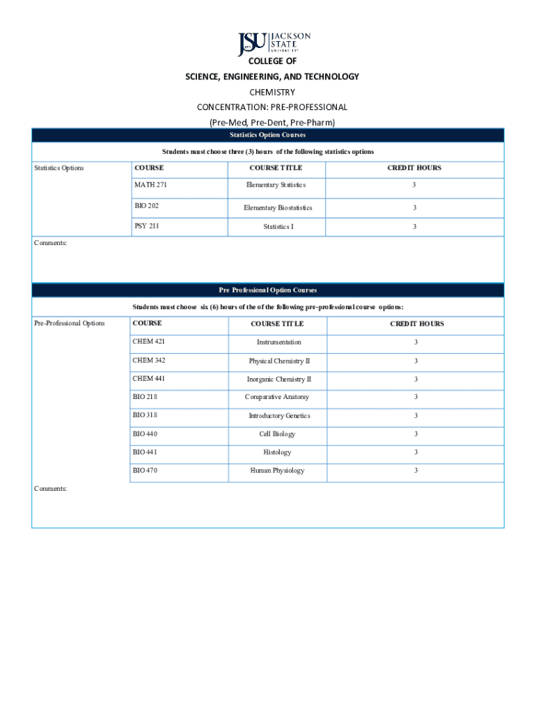 Get the free B.S. with a Major in Chemistry: Pre-Professional ...