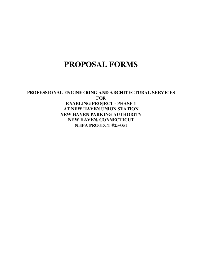 PROPOSAL FORMSPROFESSIONAL ENGINEERING AND ARCHITECTURAL SERVICES FOR ENABLING PROJECT PHASE 1 AT NEW HAVEN UNION STATION NEW HAVEN PARKING AUTHORITY NEW HAVEN, CONNECTICUT NPA PROJECT #23051PROPOSAL