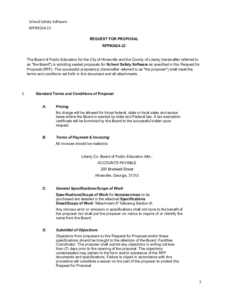 School Safety Software RFP#202422 REQUEST FOR PROPOSAL RFP#202422 The Board of Public Education for the City of Hinesville and the County of Liberty (hereinafter referred to as \”the Board\”)