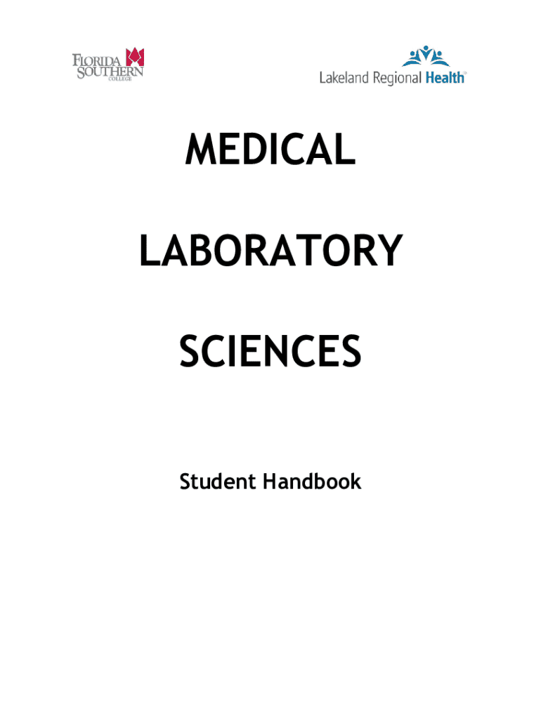 MEDICAL LABORATORY SCIENCES Student HandbookTable of Contents Mission .........................................................................................................................................................
