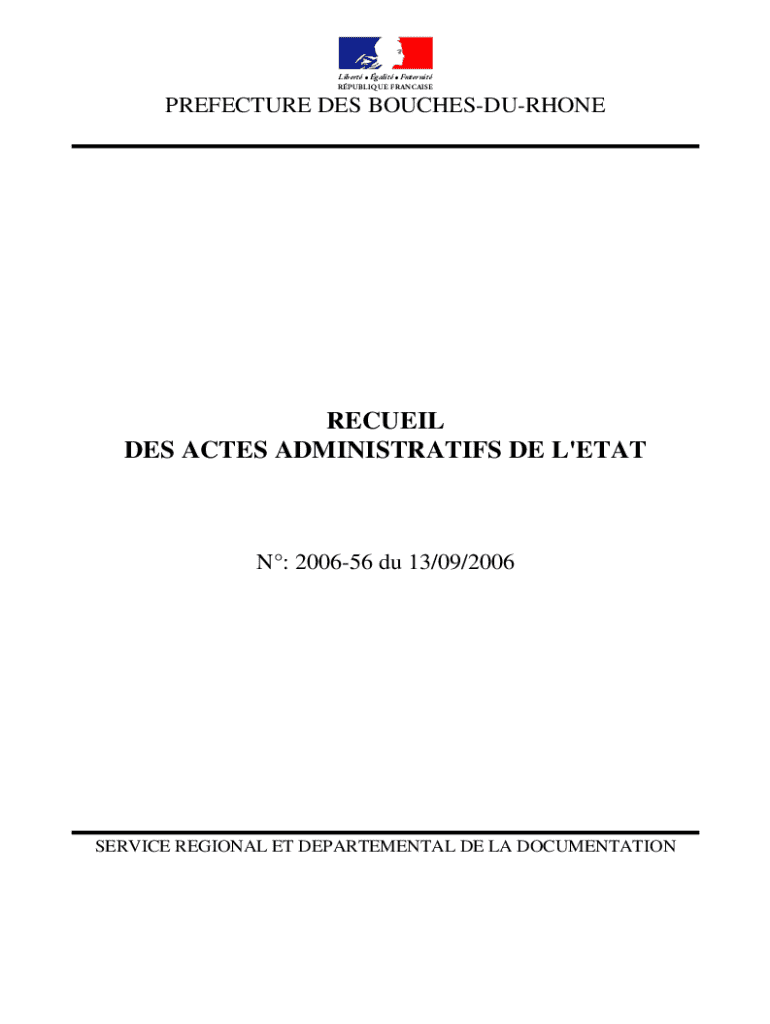 PREFECTURE DES BOUCHESDURHONERECUEIL DES ACTES ADMINISTRATIFS DE L\'ETATN: 200656 du 13/09/2006SERVICE REGIONAL ET DEPARTEMENTAL DE LA DOCUMENTATIONSOMMAIRE DDASS .............................................................................................................................................................................