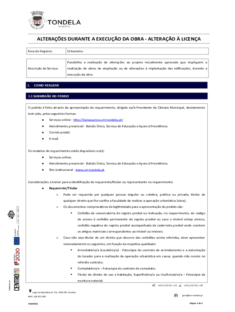Obtenha o gratuito ALTERAES DURANTE A EXECUO DA OBRA - ALTERAO LICENA