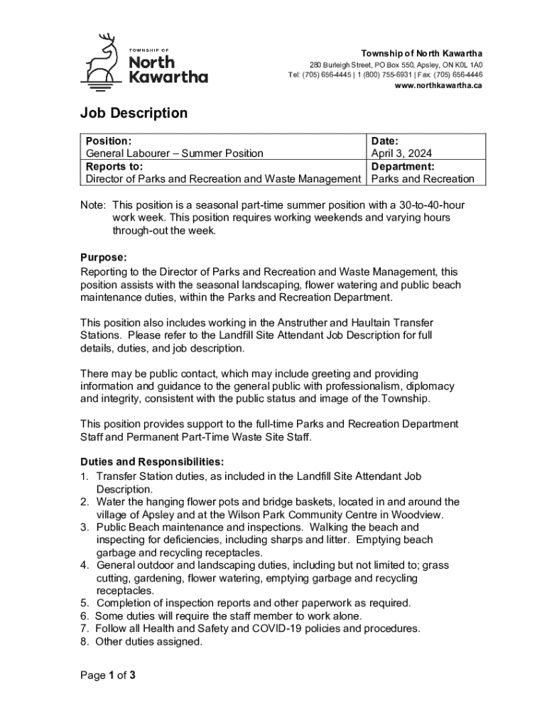 Township of North Kawartha280 Burleigh Street, PO Box 550, Apply, ON K0L 1A0
