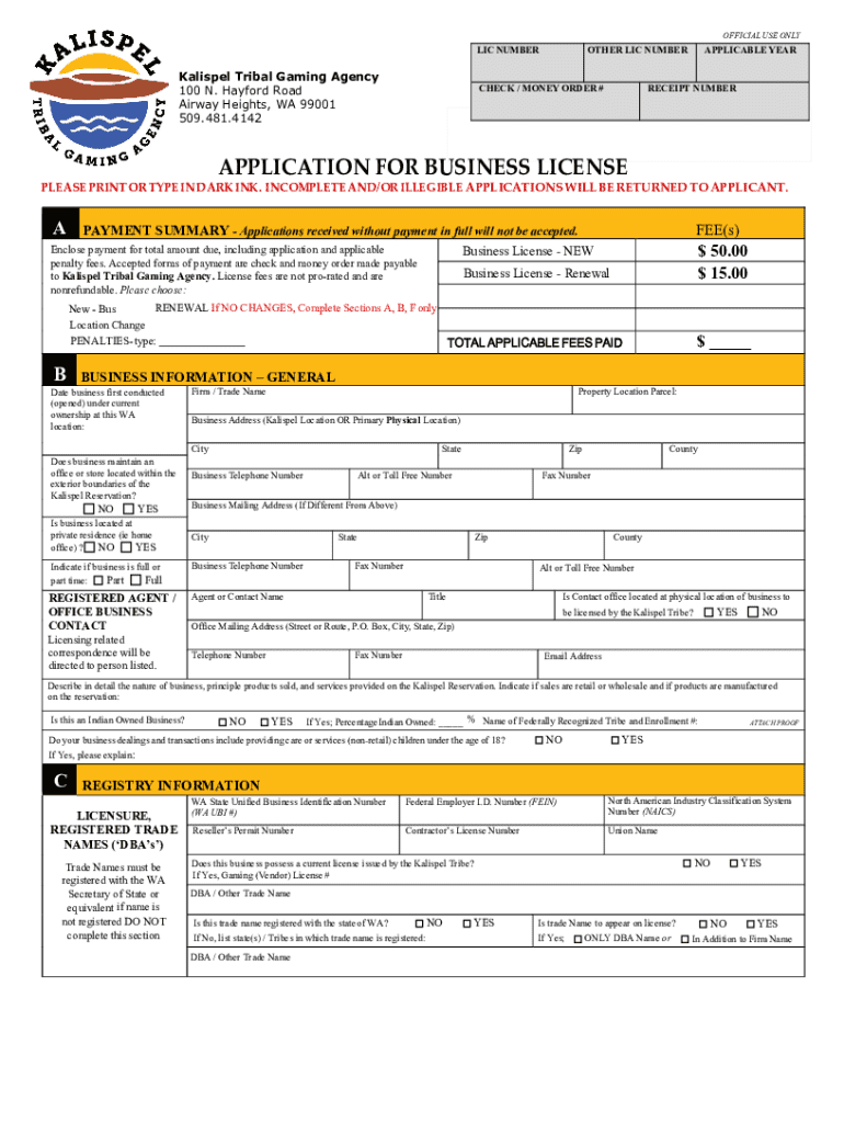 509.481.4142OTHER LIC NUMBERCHECK / MONEY ORDER #APPLICABLE YEARRECEIPT NUMBERAPPLICATION FOR BUSINESS