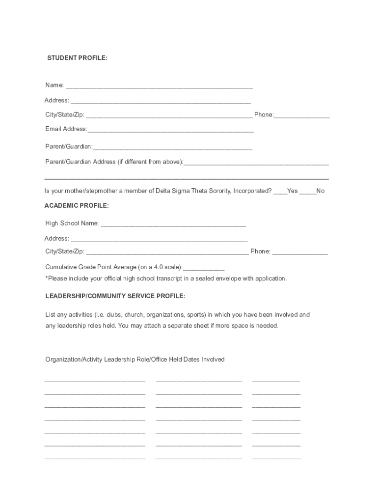2024 Scholarship Application Delta Sigma Theta Sorority, Incorporated Athens Alumnae Chapter Applications must be postmarked and returned via mail to: Athens Alumnae Chapter of DST Scholarship Committee