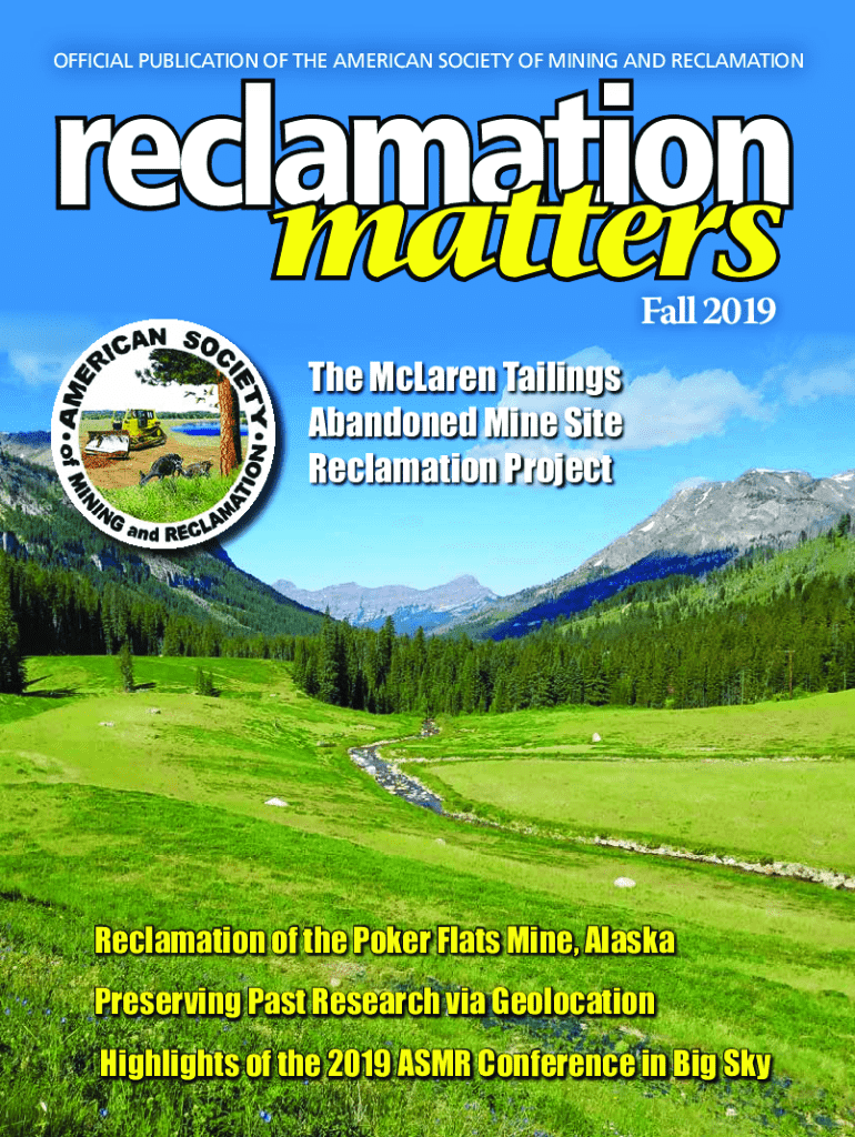 OFFICIAL PUBLICATION OF THE AMERICAN SOCIETY OF MINING AND RECLAMATIONreclamation matters Fall 2019The McLaren Tailings Abandoned Mine Site Reclamation ProjectReclamation of the Poker Flats Mine,