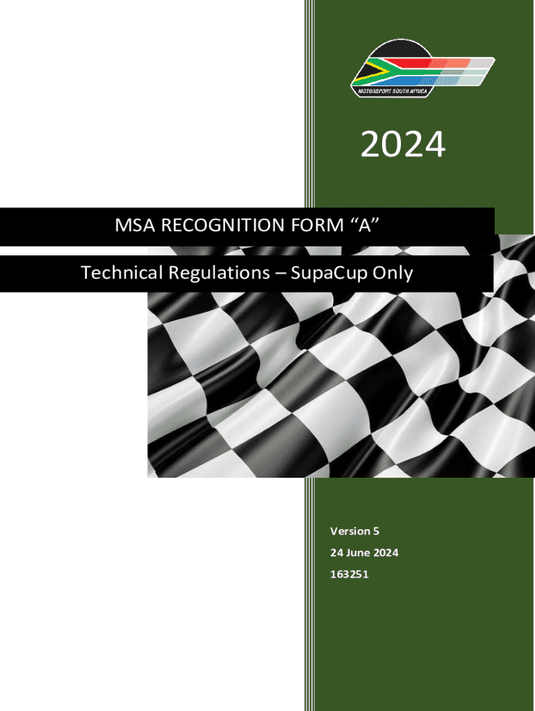 2024 MSA RECOGNITION FORM A Technical Regulations SupaCup OnlyVersion 5 24 June 2024 1632511REVIEW AND AMENDMENTS Amendments and updates to the rules will be recorded in the Amendment Record, detailing
