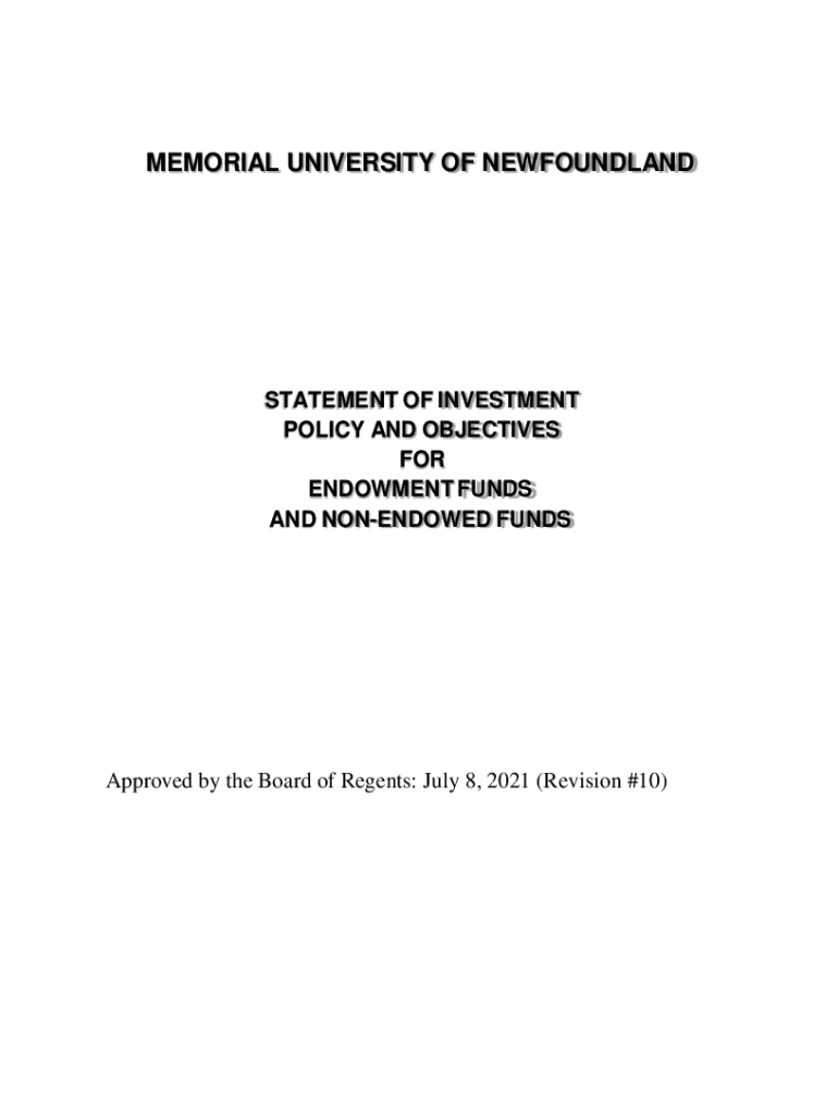 MEMORIAL UNIVERSITY OF NEWFOUNDLANDSTATEMENT OF INVESTMENT