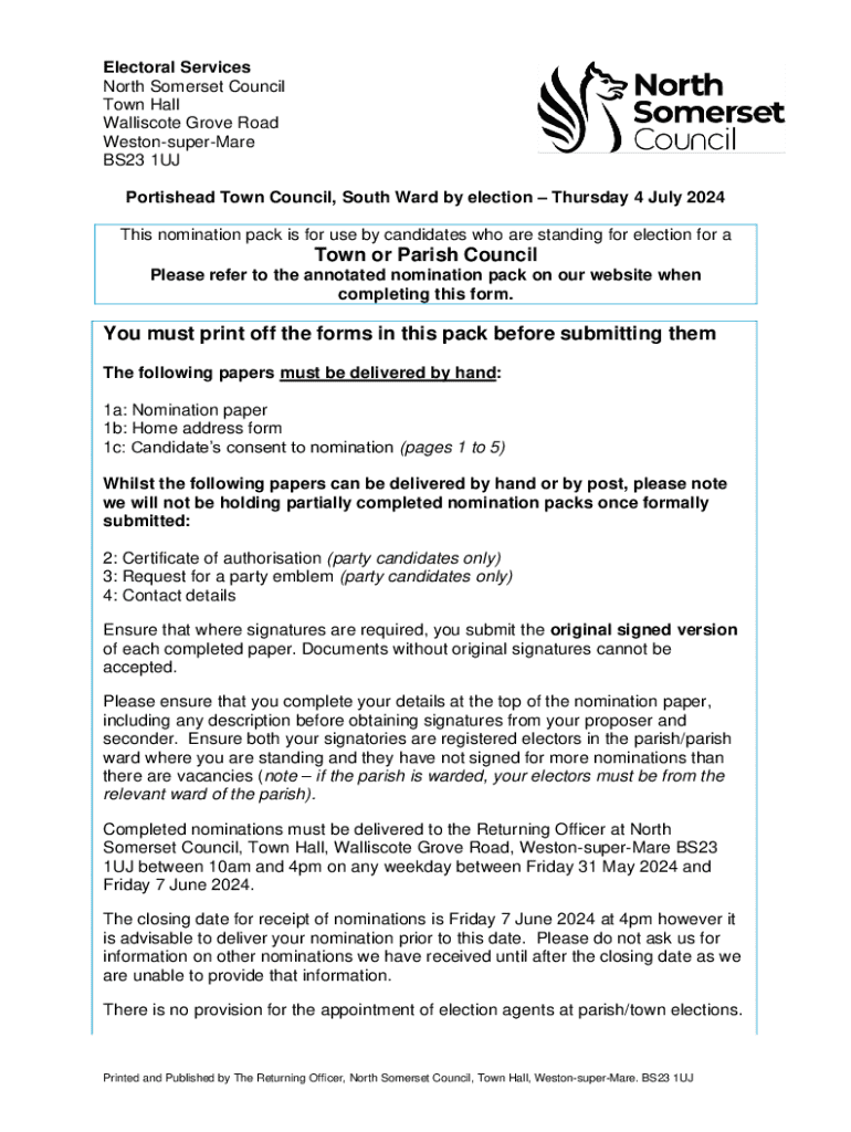Get the free notice of election - Portishead Town Council, South ward ... - n-somerset gov