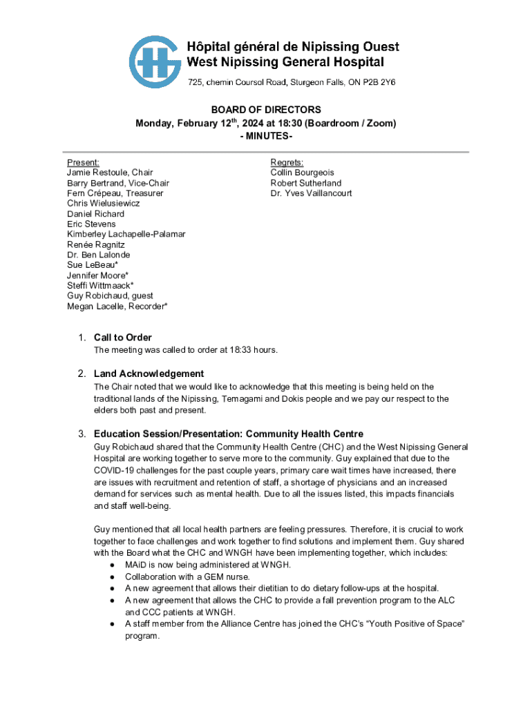 Get the free BOARD OF DIRECTORS Monday, February 12th, 2024 at ...