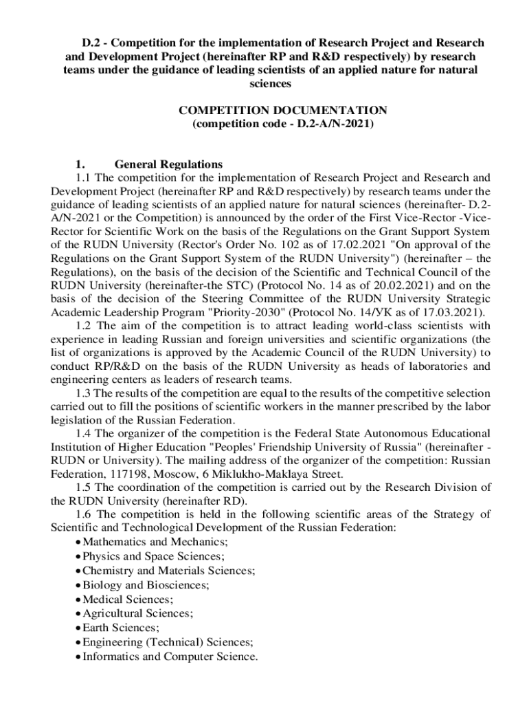 D.2 Competition for the implementation of Research Project and Research and Development Project (hereinafter RP and R&D respectively) by research teams under the guidance of leading scientists of