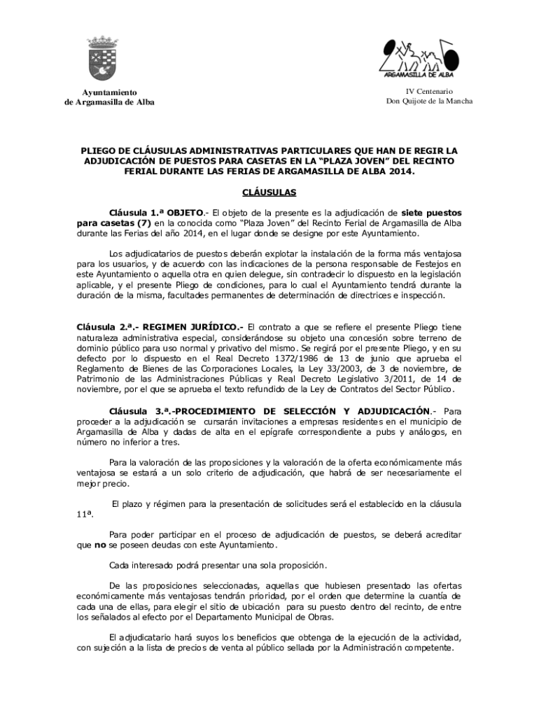 de Argamasilla de AlbaPLIEGO DE CLUSTERS ADMINISTRATIVE PARTICULARS QUE HAN DE REGOR LA