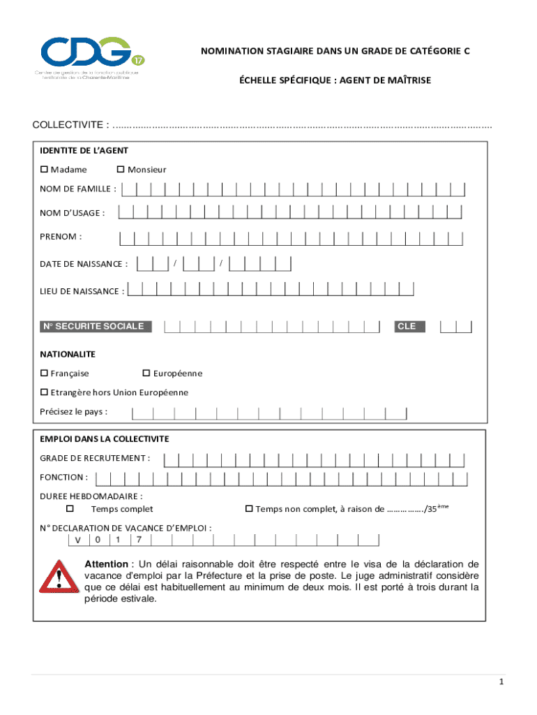 Obtenir le gratuit NOMINATION STAGIAIRE DANS UN GRADE DE CATGORIE C ...