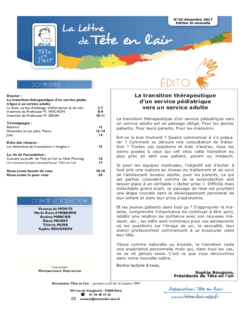 Obtenir le gratuit La transition thrapeutique d'un service pdiatrique vers ... - teteenlair asso