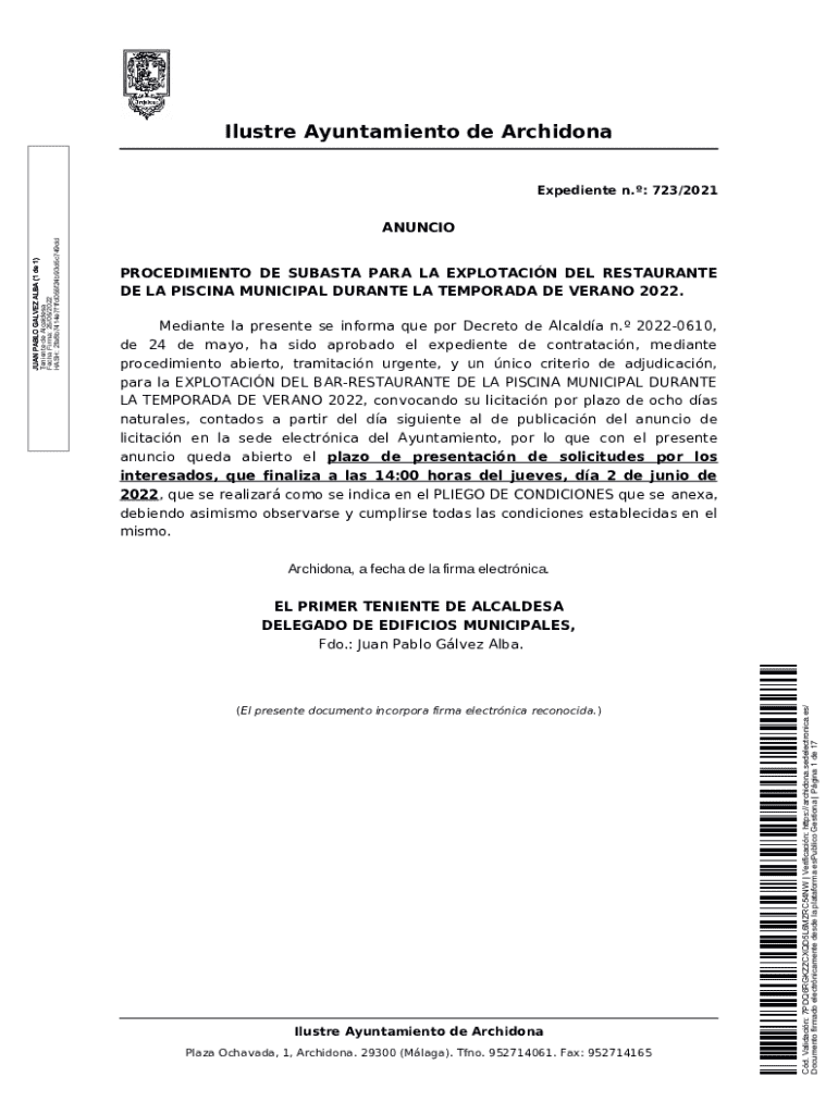 Expedient n.: 723/2021PROCEDIMIENTO DE SHASTA PARA LA EXPLAIN DEL RESTAURANT