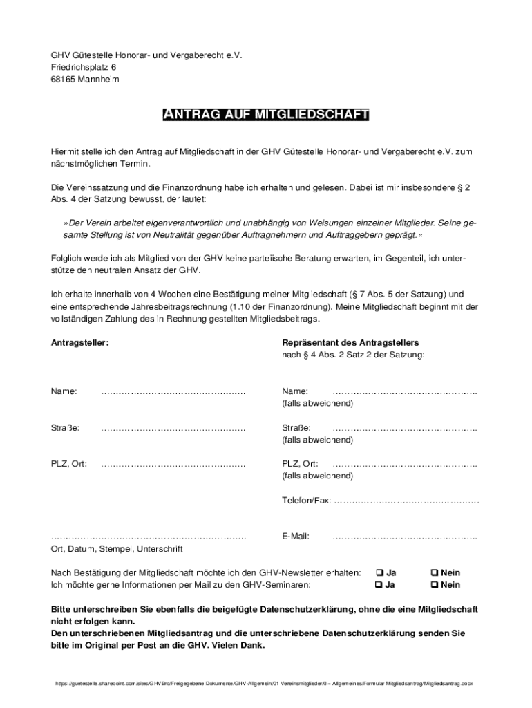 Hermit Steele ICH den Ant rag AUF Mitgliedschaft in her GHz Estelle Honorary UND Vergaberecht e.V.