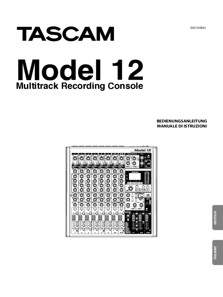 042100825Model 12 Multi track Recording ConsoleITALIANODEUTSCHBEDIENUNGSANLEITUNG MANUAL EDI ISTRUZIONIo TA SCAM is a registered trademark of TEAM Corporation. O SDC Logo is a trademark of SD3C, LLC.o