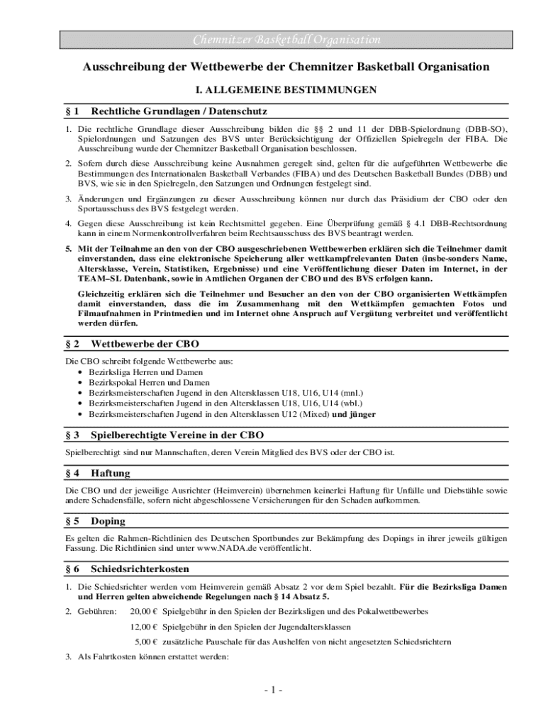 Ausschreibung her Wettbewerbe her Chemnitz Basketball Organization