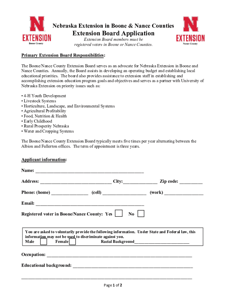 Nebraska Extension in Boone & Dance CountiesExtension Board Application Boone CountyExtension Board members must be