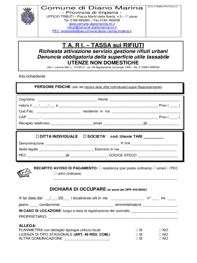 Commune di Piano Marinade E TIMBRE PROTOCOL LO Provincial di Imperial OFFICE TRIBUTE Piazza Martini Della liberty, n.3 1 piano