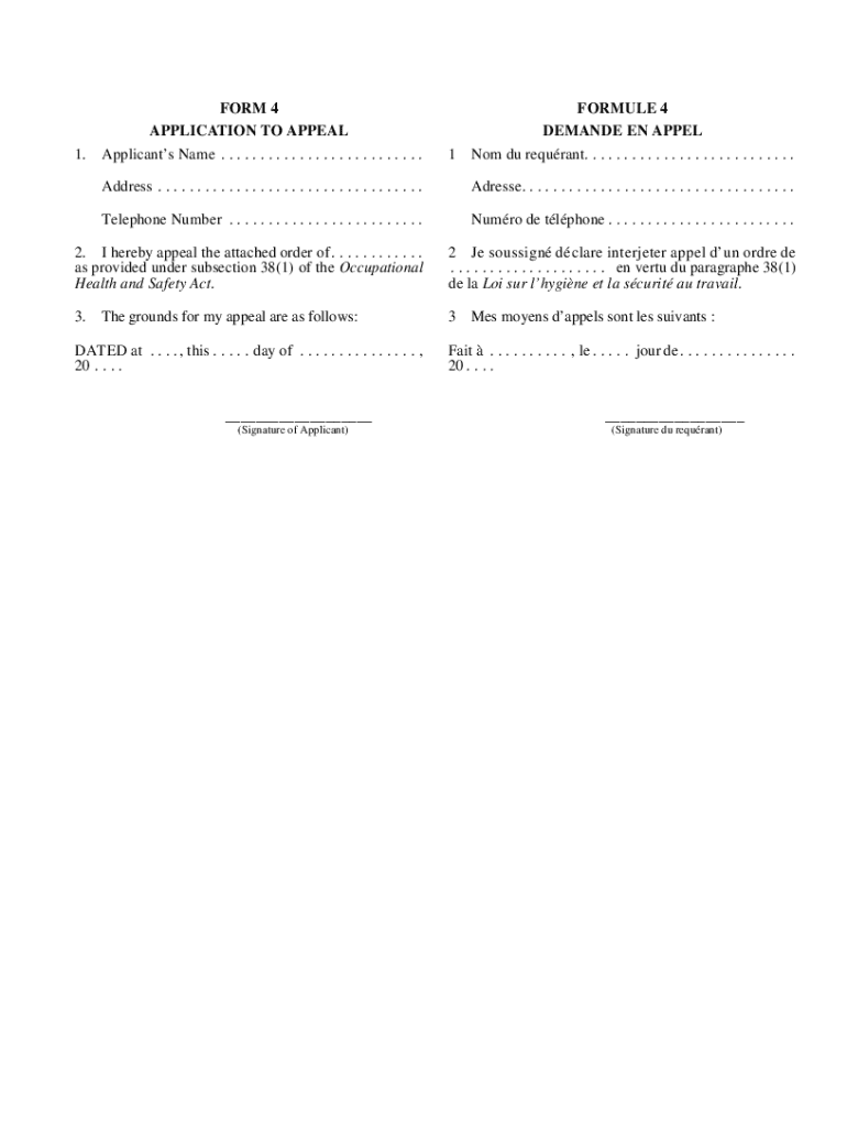 O0.21. Occupational Health and Safety Actor 4 APPLICATION TO APPEAL Applicants Name. . . . . . . . . . . . . . . . . . . . . . . . . .18426FORMULE 4 DEMAND EN APPEAL Not Du return. . . . . . . . .