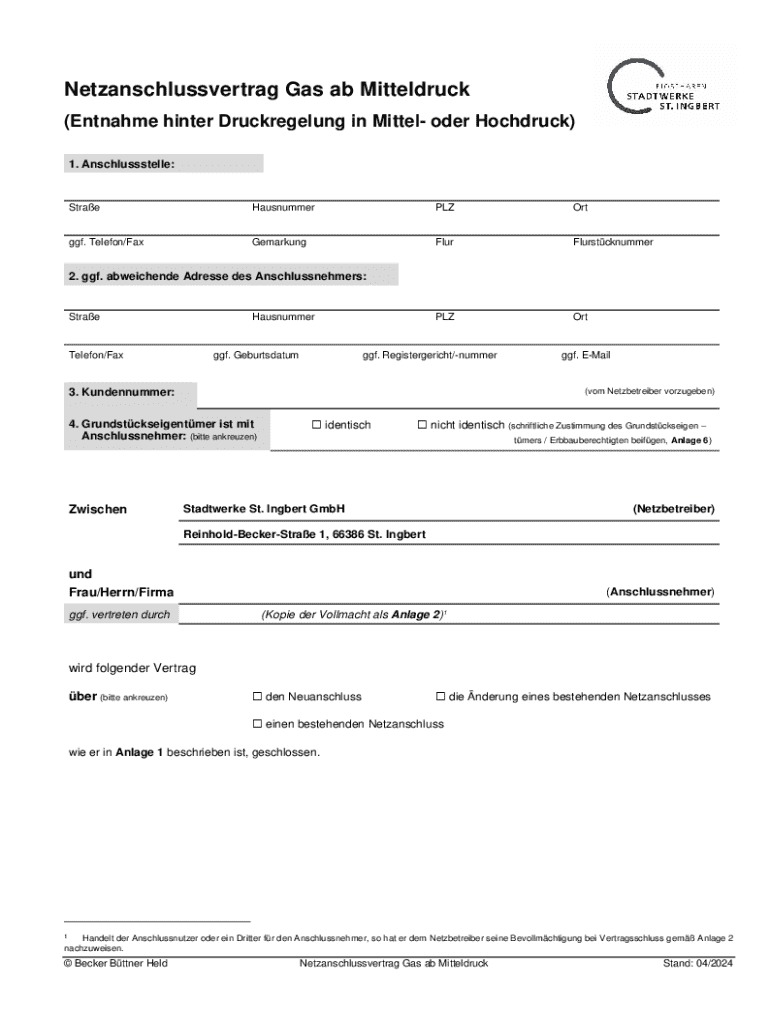 Holen Sie sich kostenlos Netzanschlussvertrag Gas Entnahme hinter Druckregelung in ...