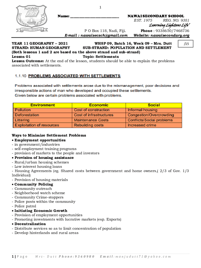 1 Name: ___P O Box 118, Nadi, Fiji. Email : nawaisecsch@gmail.comNAWAI SECONDARY SCHOOL EST. 1975 REG. NO. 9381 Learning Lightens LifePhone : 9338650/7468736 Website: nawaisecondary.orgYEAR 11 GEOGRAPHY