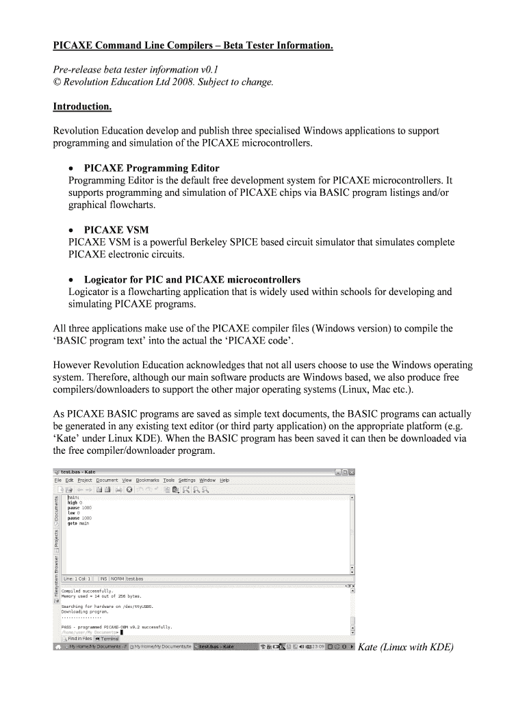 Email, fax, or share your picaxe command line compilers form via URL. You can also download, print, or export forms to your preferred cloud storage service.