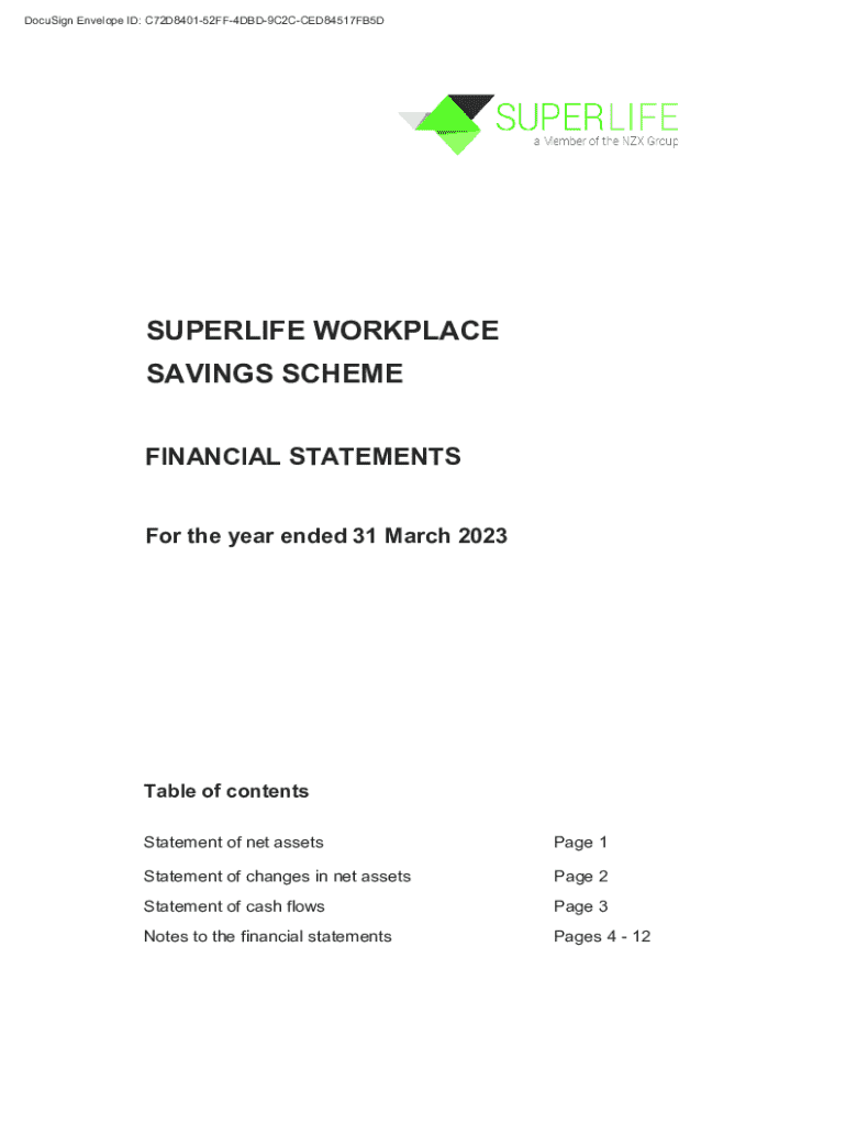 SUPERVISE WORKPLACE SAVINGS SCHEME FINANCIAL STATEMENTS For the year ended 31 March 2023Table of contents Statement of net assets Page 1Statement of changes in net assets Page 2Statement of cash flows