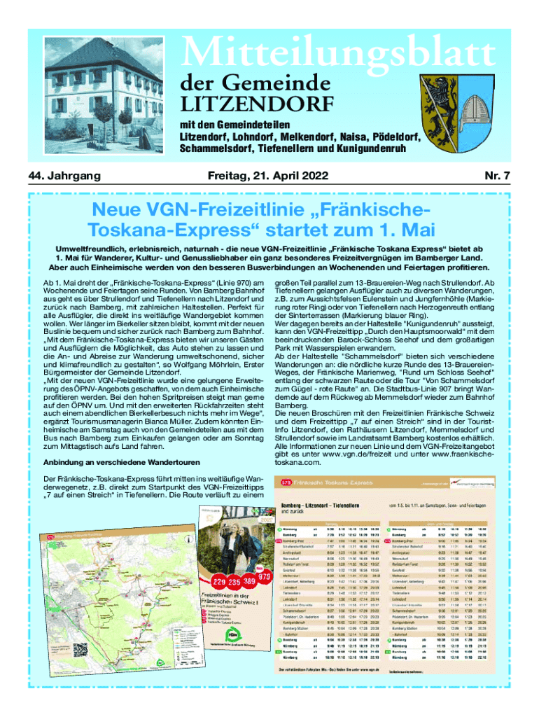 Schammelsdorf, Tiefenellern UND Kunigundenruh44. JahrgangFreitag, 21. April 2022Nr. 7Neue