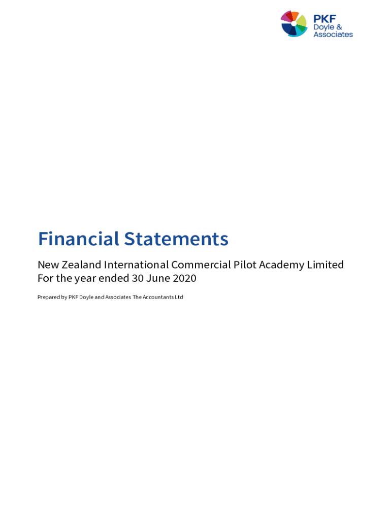 Financial Statements New Zealand International Commercial Pilot Academy Limited For the year ended 30 June 2020 Prepared by PDF Doyle and Associates The Accountants Contents 3Directory4Statutory Information7Statement