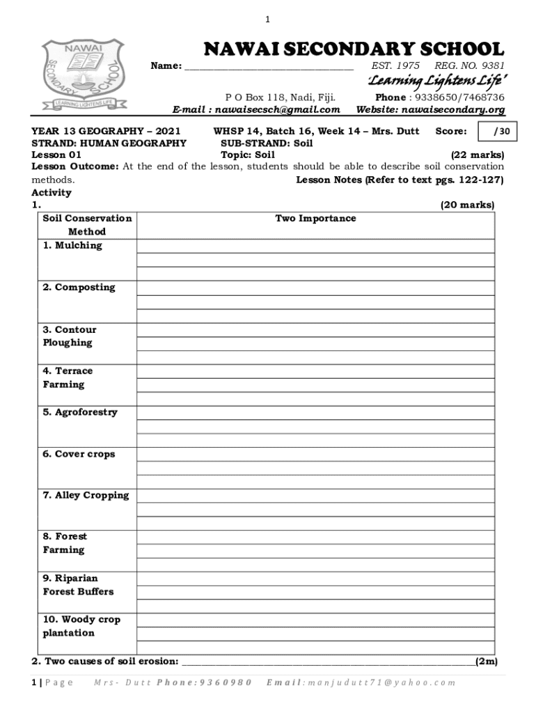 Website: nawaisecondary.year 13 GEOGRAPHY