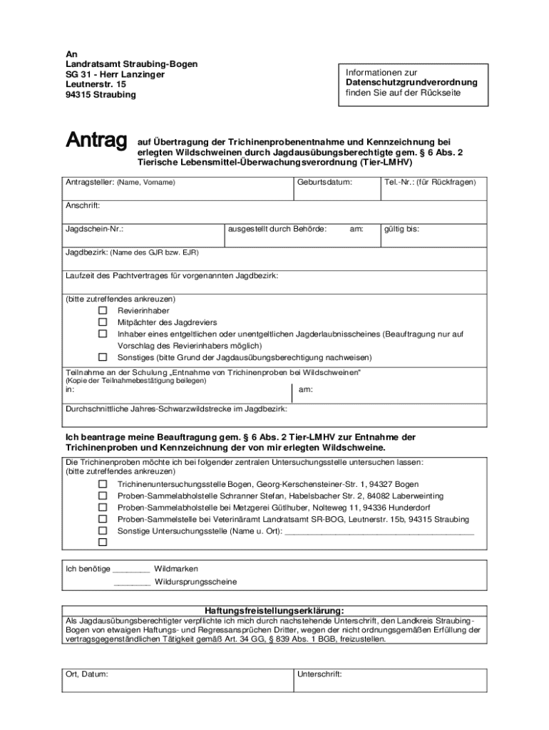 finder She AUF her Rckseiteauf Bertrand her Trichinenprobenentnahme UND Kennzeichnung