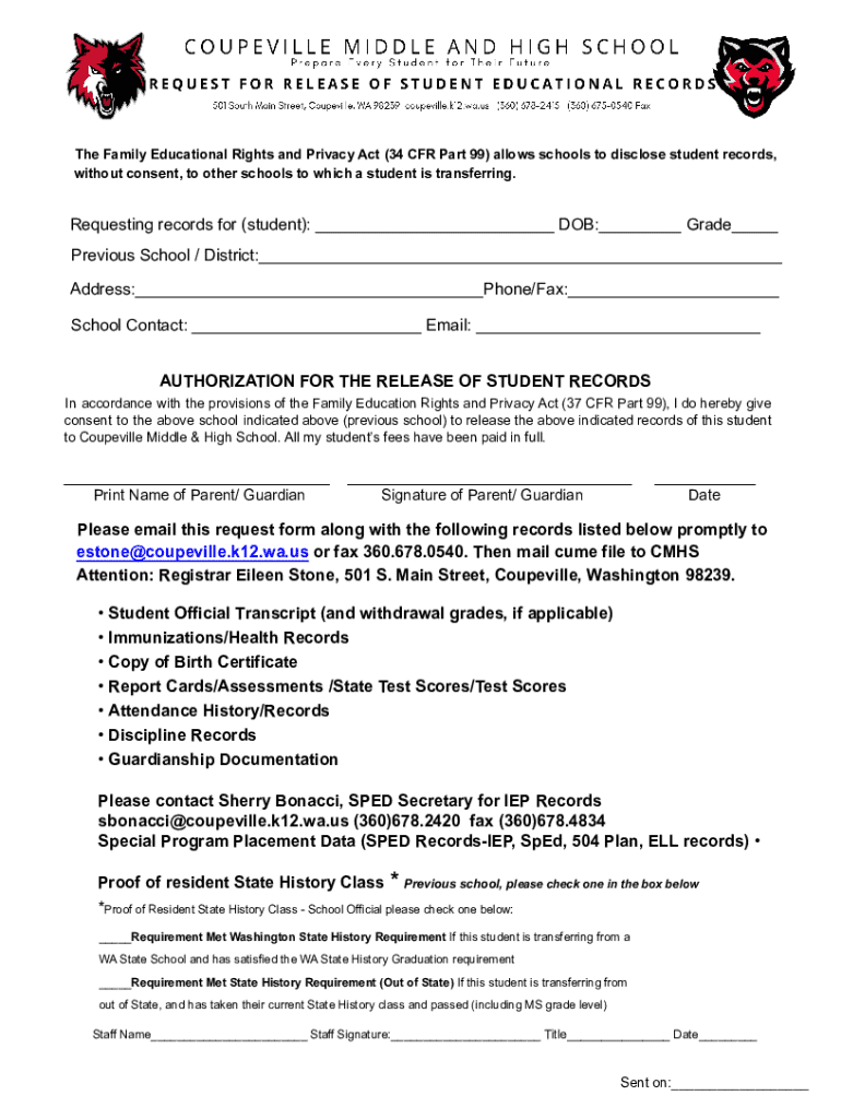 The Family Educational Rights and Privacy Act (34 CFR Part 99) allows schools to disclose student records, without consent, to other schools to which a student is transferring.Requesting records for