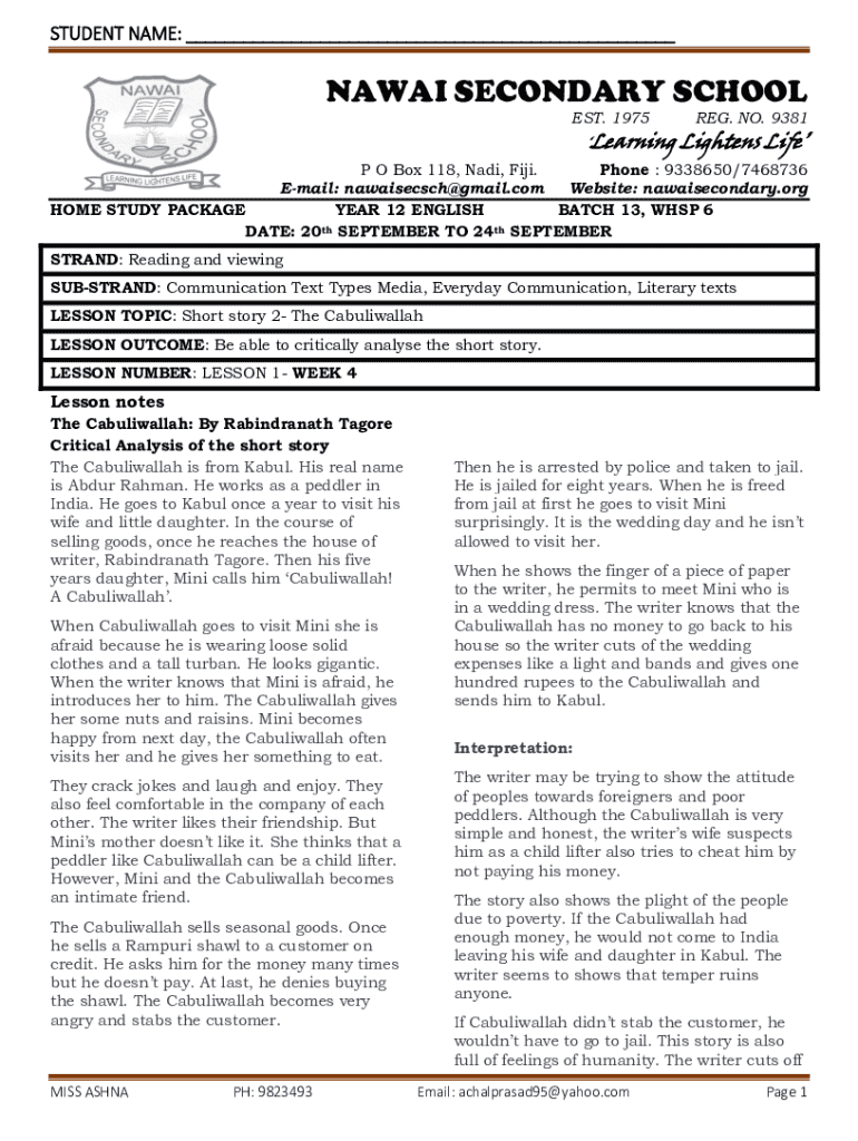 STUDENT NAME: ___AWAY SECONDARY SCHOOL